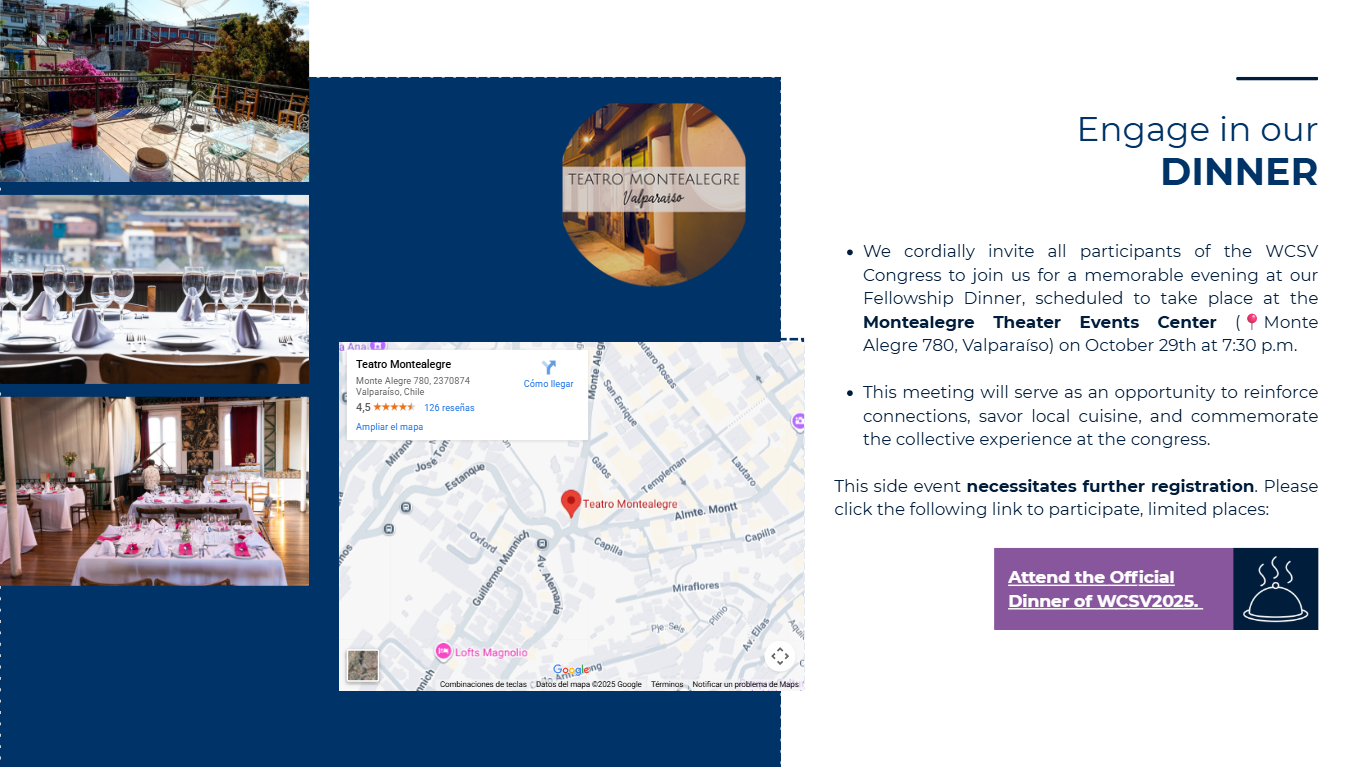 Meal Request / Allergies Along with your dinner registration, we kindly ask you to complete the following form if you have any dietary requirements. Dietary Requirements Form Your name Your e-mail Dietary preference VegatarianVeganNo specific requirements Please indicate any food allergies or intolerances, if applicable: Δ